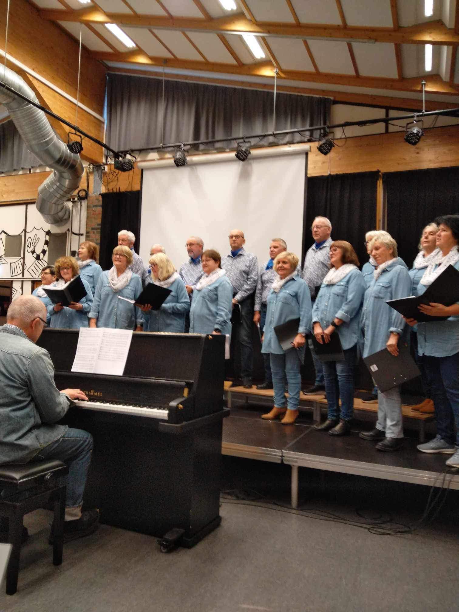 Et blandakor med glade amatørsangere som synger populærmusikk fra 50, 60 og 70-tallet.